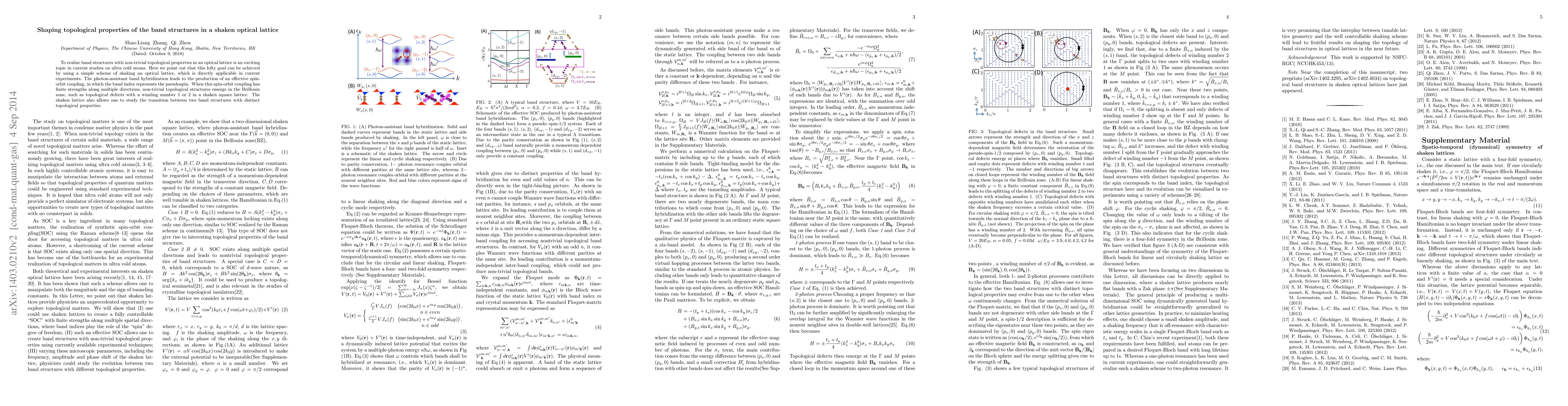 This paper demonstrates how shaking an optical lattice can create band structures with non-trivial topological properties in ultra-cold atoms. The method induces effective spin-orbit coupling through photon-assisted band hybridization, leading to topological defects and transitions between different topological band structures.
