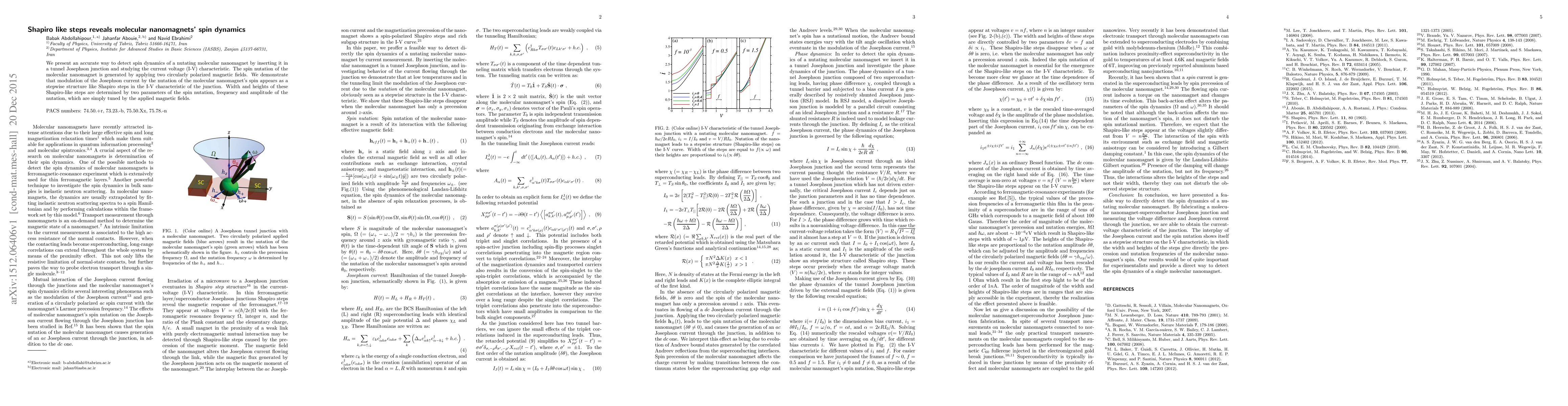 This paper presents a method to observe spin dynamics in molecular nanomagnets using tunnel Josephson junctions, where spin nutation induced by magnetic fields manifests as Shapiro-like steps in the current-voltage characteristics. The width and height of these steps depend on the frequency and amplitude of the spin nutation, controlled by applied magnetic fields.