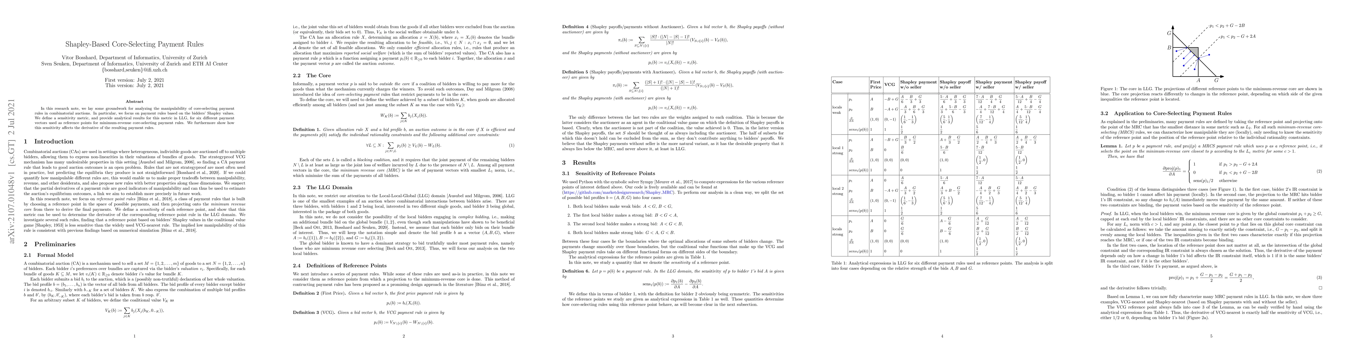 In this research note, we lay some groundwork for analyzing the manipulability of core-selecting payment rules in combinatorial auctions. In particular, we focus on payment rules based on the bidders' Shapley values. We define a sensitivity metric, and provide analytical results for this metric in LLG, for six different payment vectors used as reference points for minimum-revenue core-selecting payment rules. We furthermore show how this sensitivity affects the derivative of the resulting payment rules.