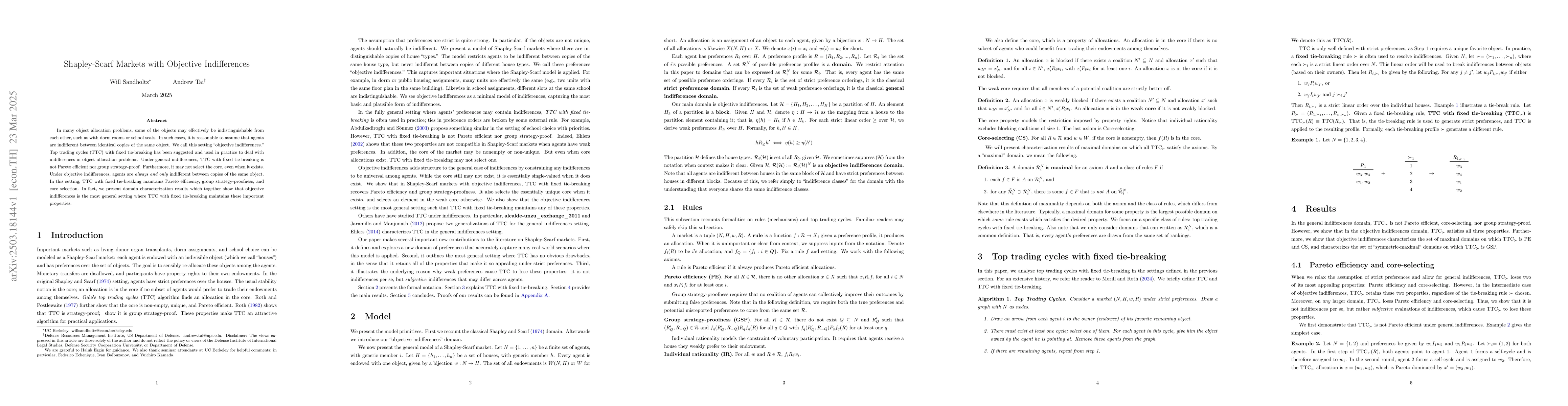 The research introduces a new domain of preferences called 'objective indifferences' and analyzes the Top Trading Cycles (TTC) mechanism with fixed tie-breaking under this setting.