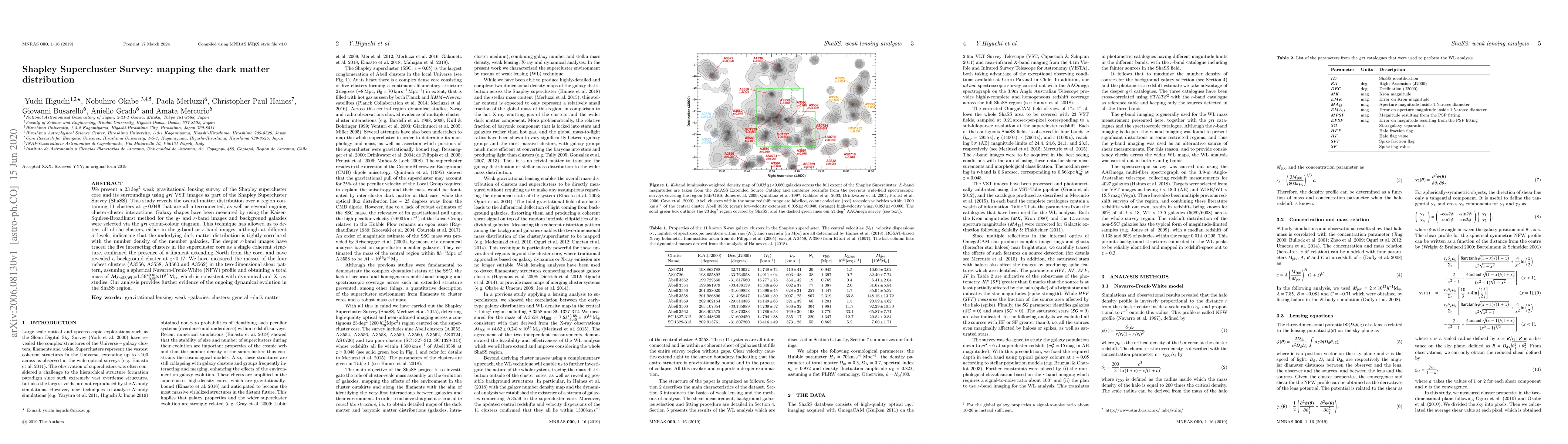 The paper presents a detailed weak lensing analysis methodology for mapping dark matter distribution in the Shapley Supercluster, including shape measurement, galaxy selection, and mass estimation.