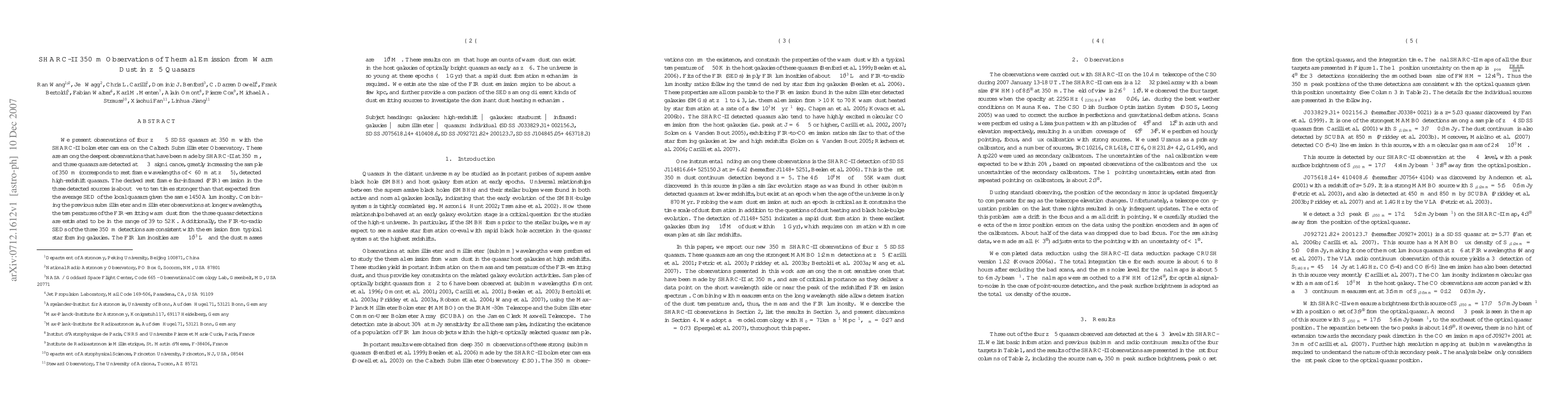 Researchers detected four quasars at 350 micron wavelength, finding that they emit far-infrared radiation five to ten times stronger than expected, with temperatures ranging from 39 to 52 K.