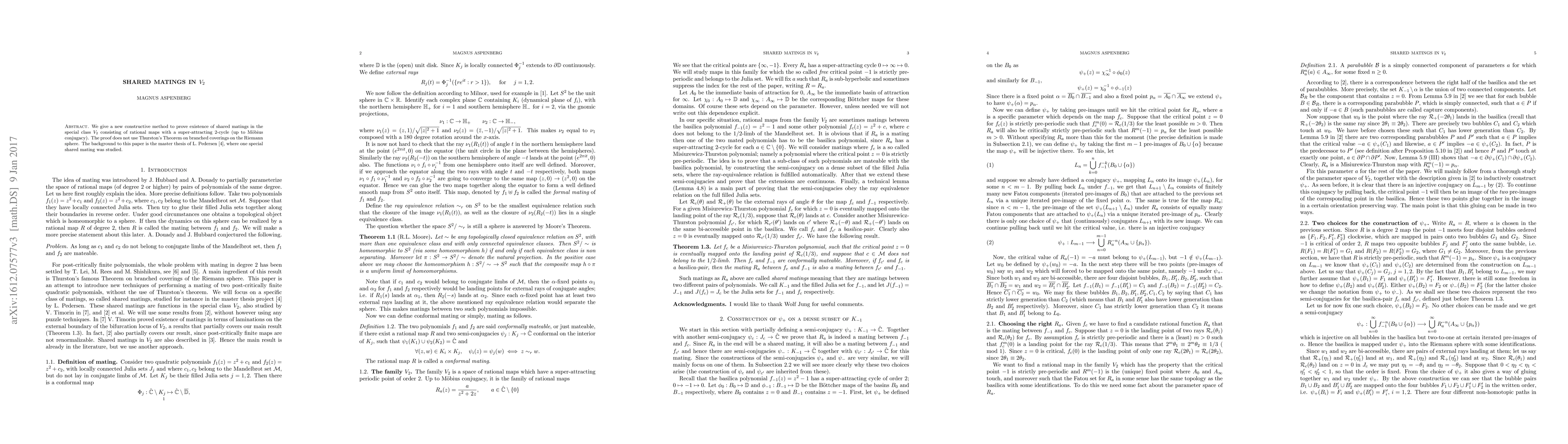 We give a new constructive method to prove existence of shared matings in the special class $V_2$ consisting of rational maps with a super-attracting $2$-cycle (up to M\"obius conjugacy). The proof does not use Thurston's Theorem on branched coverings on the Riemann sphere. The background to this paper is the master thesis of L. Pedersen (Ume\r{a} University, 2014), where one special shared mating was studied.