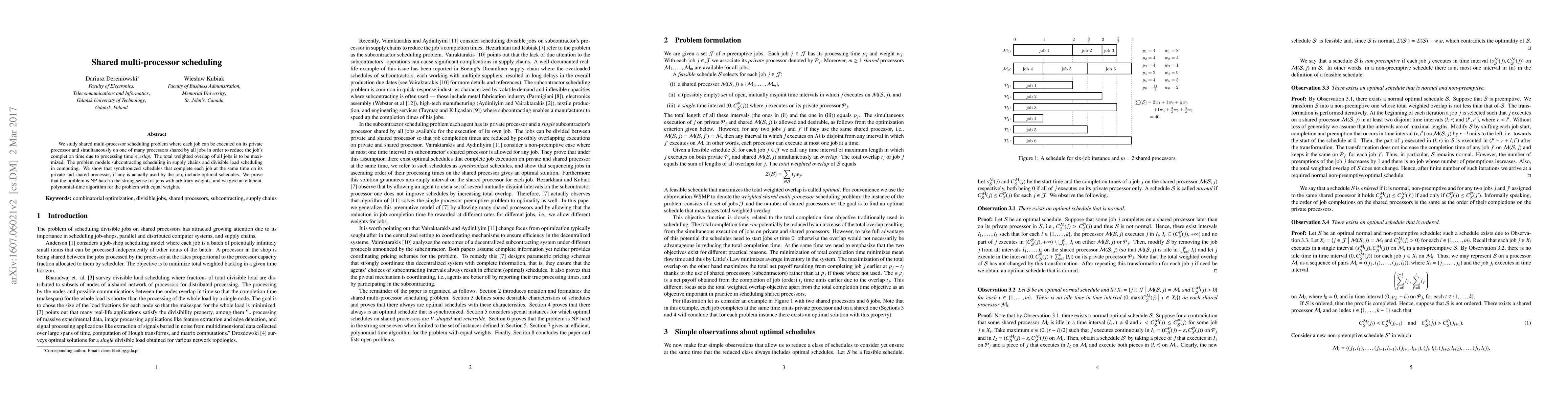 This paper investigates the shared multi-processor scheduling problem, focusing on maximizing job completion time overlap to reduce overall processing time. It proves the problem is NP-hard for arbitrary weights but provides a polynomial-time algorithm for equal weights, demonstrating optimal synchronized schedules.