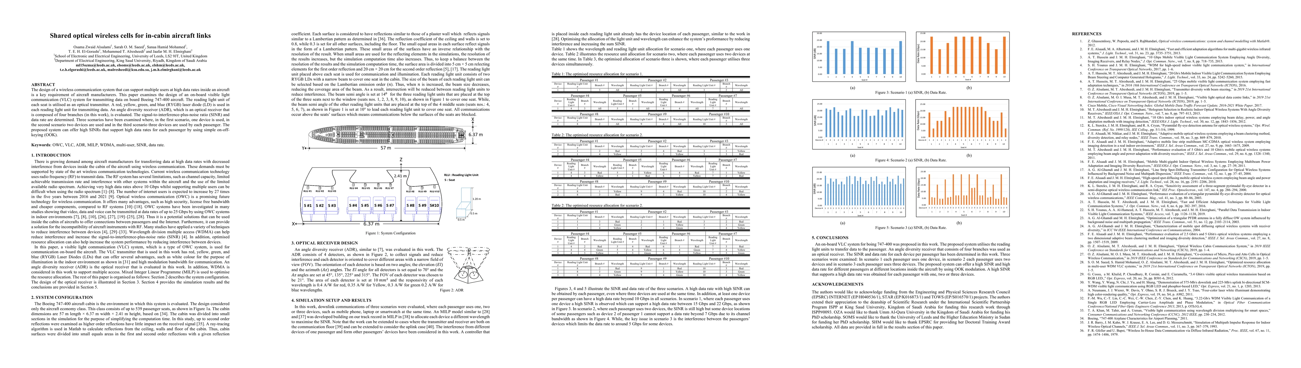 This paper proposes a visible light communication (VLC) system for high-data-rate in-cabin aircraft links using reading light units as optical transmitters and angle diversity receivers. The system supports multiple users with high SINRs and data rates using simple on-off-keying (OOK) across different passenger device scenarios.