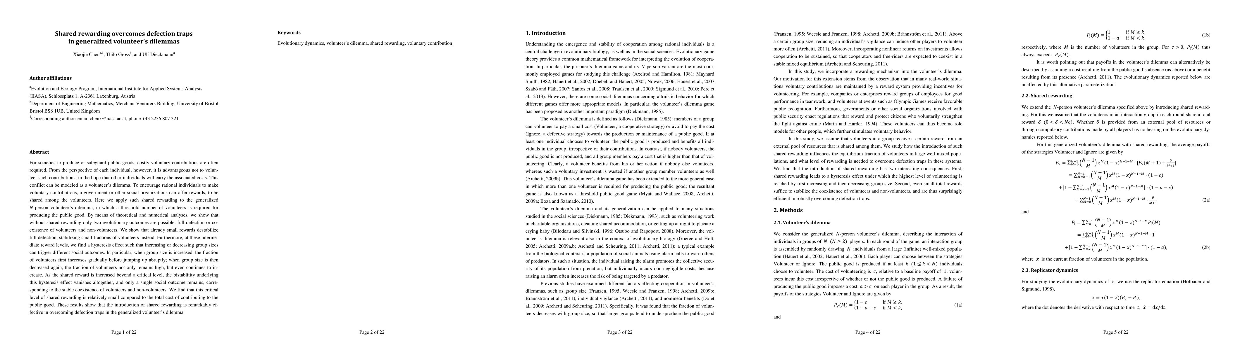 A study finds that shared rewards can overcome 'defection traps' in volunteer dilemmas, leading to a stable coexistence of volunteers and non-volunteers with relatively small reward levels.