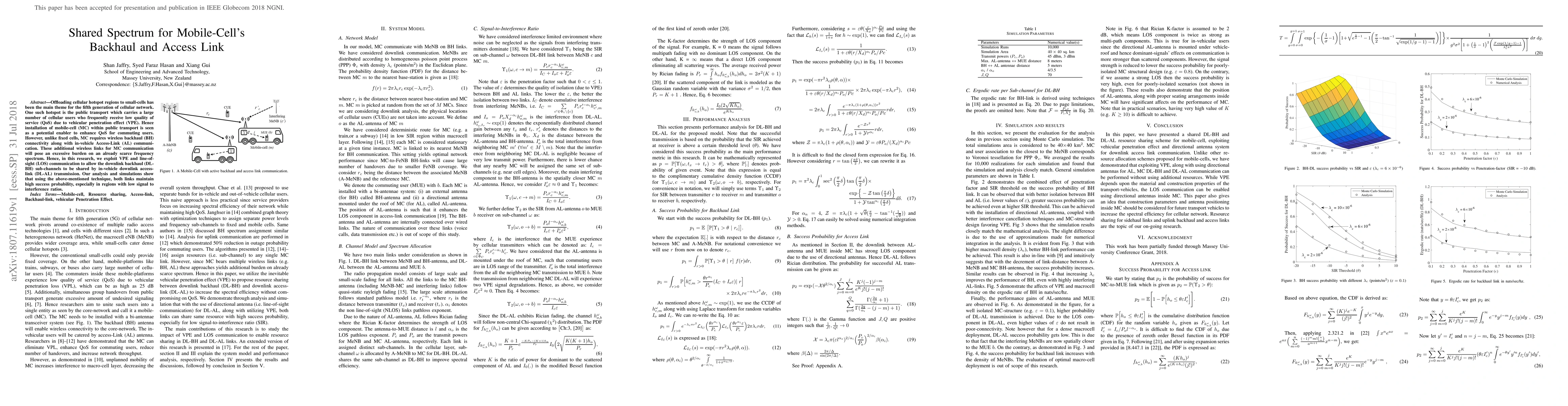 This research explores the use of shared spectrum for mobile-cell backhaul and access links in cellular networks, specifically within public transport hotspots to improve QoS. It proposes leveraging vehicular penetration effect and line-of-sight communication to share downlink backhaul sub-channels with in-vehicle access links, demonstrating high success probability even in low signal environments.