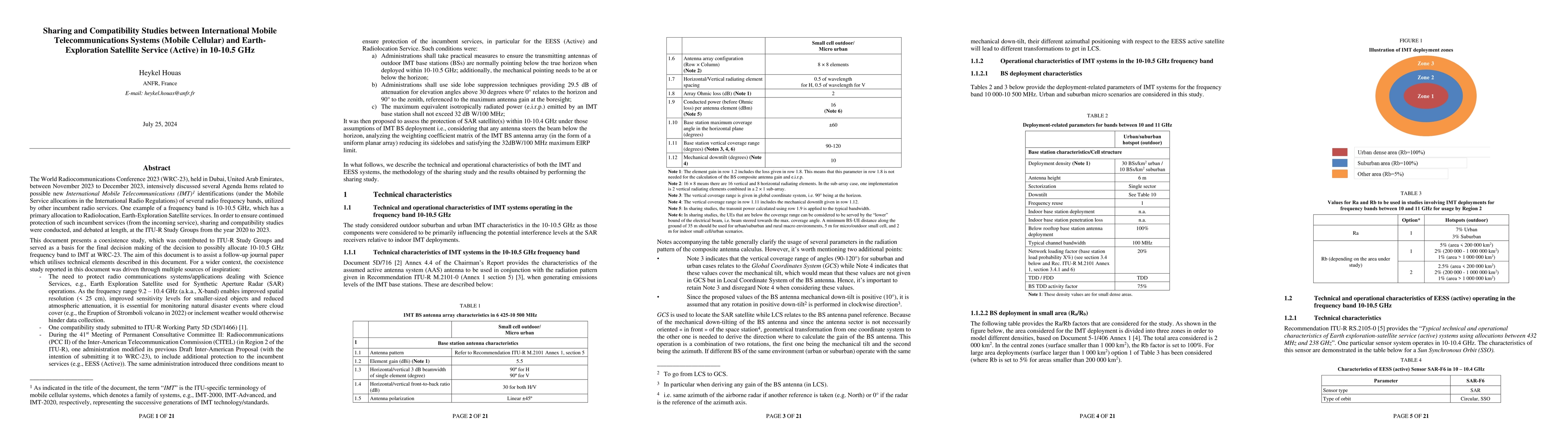 This paper discusses studies conducted to assess the compatibility between the International Mobile Telecommunications (IMT) and Earth-Exploration Satellite Service (EESS) in the 10-10.5 GHz frequency band, proposing measures to protect incumbent satellite services, including antenna orientation, side lobe suppression, and power limits for IMT base stations.