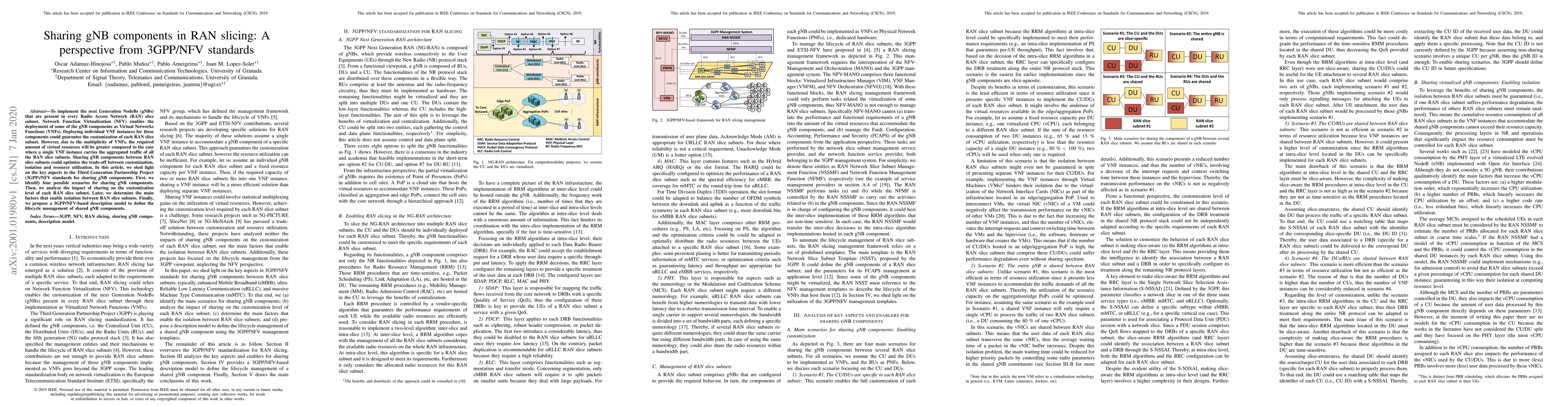 To implement the next Generation NodeBs (gNBs) that are present in every Radio Access Network (RAN) slice subnet, Network Function Virtualization (NFV) enables the deployment of some of the gNB components as Virtual Networks Functions (VNFs). Deploying individual VNF instances for these components could guarantee the customization of each RAN slice subnet. However, due to the multiplicity of VNFs, the required amount of virtual resources will be greater compared to the case where a single VNF instance carries the aggregated traffic of all the RAN slice subnets. Sharing gNB components between RAN slice subnets could optimize the trade-off between customization, isolation and resource utilization. In this article, we shed light on the key aspects in the Third Generation Partnership Project (3GPP)/NFV standards for sharing gNB components. First, we identify four possible scenarios for sharing gNB components. Then, we analyze the impact of sharing on the customization level of each RAN slice subnet. Later, we determine the main factors that enable isolation between RAN slice subnets. Finally, we propose a 3GPP/NFV-based description model to define the lifecycle management of shared gNB components
