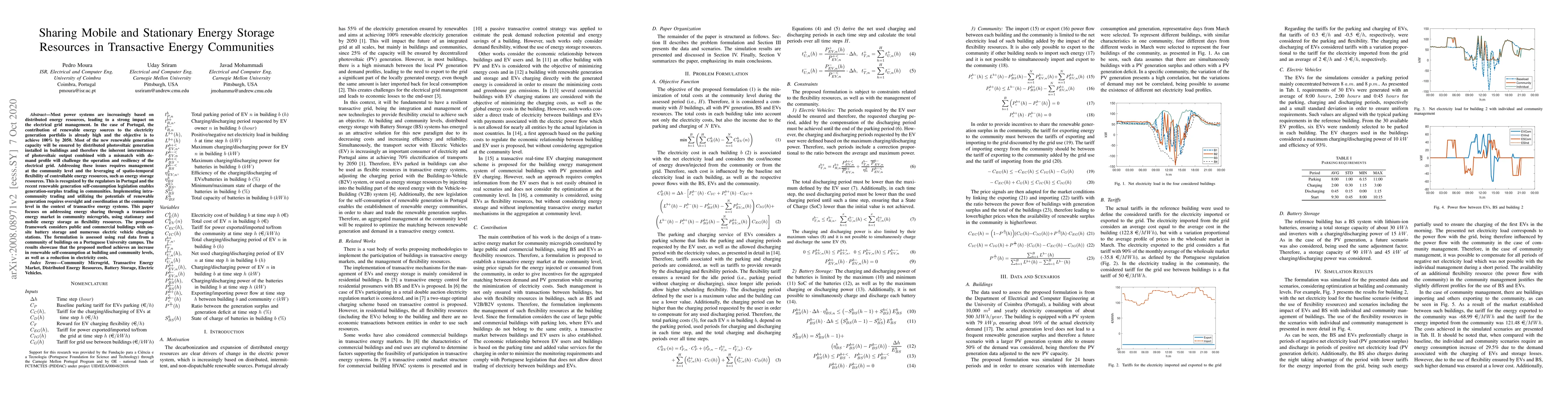 This paper explores the integration of stationary and mobile energy storage resources in transactive energy communities to optimize renewable energy use and reduce grid costs. The proposed framework, tested on a Portuguese university campus, demonstrates increased renewable self-consumption and lower electricity expenses through coordinated energy sharing.