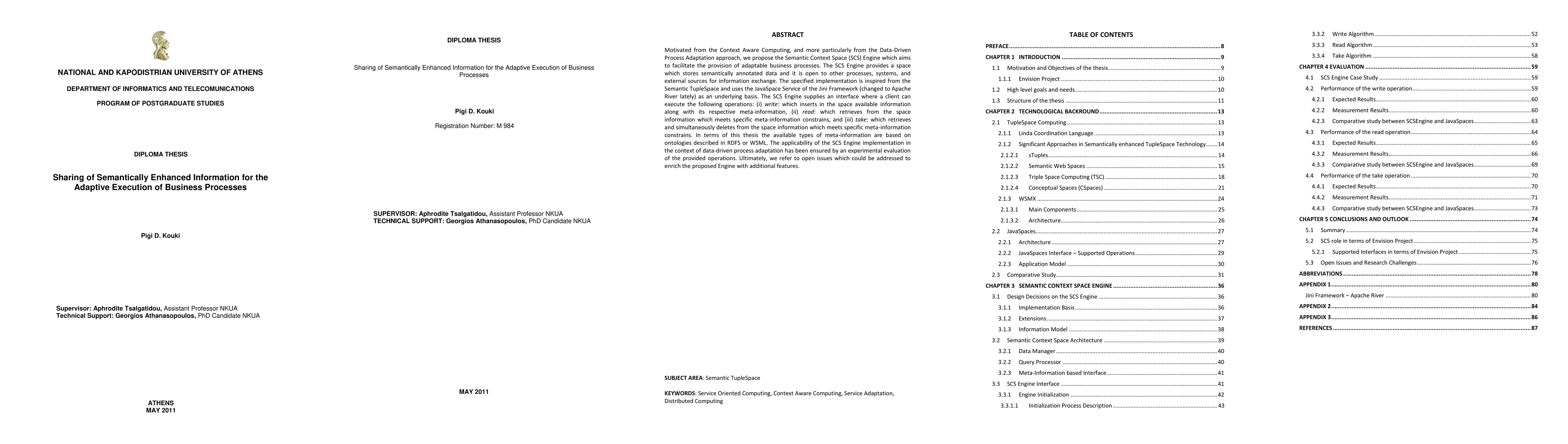 Motivated from the Context Aware Computing, and more particularly from the Data-Driven Process Adaptation approach, we propose the Semantic Context Space (SCS) Engine which aims to facilitate the provision of adaptable business processes. The SCS Engine provides a space which stores semantically annotated data and it is open to other processes, systems, and external sources for information exchange. The specified implementation is inspired from the Semantic TupleSpace and uses the JavaSpace Service of the Jini Framework (changed to Apache River lately) as an underlying basis. The SCS Engine supplies an interface where a client can execute the following operations: (i) write: which inserts in the space available information along with its respective meta-information, (ii) read: which retrieves from the space information which meets specific meta-information constrains, and (iii) take: which retrieves and simultaneously deletes from the space information which meets specific meta-information constrains. In terms of this thesis the available types of meta-information are based on ontologies described in RDFS or WSML. The applicability of the SCS Engine implementation in the context of data-driven process adaptation has been ensured by an experimental evaluation of the provided operations. Ultimately, we refer to open issues which could be addressed to enrich the proposed Engine with additional features.