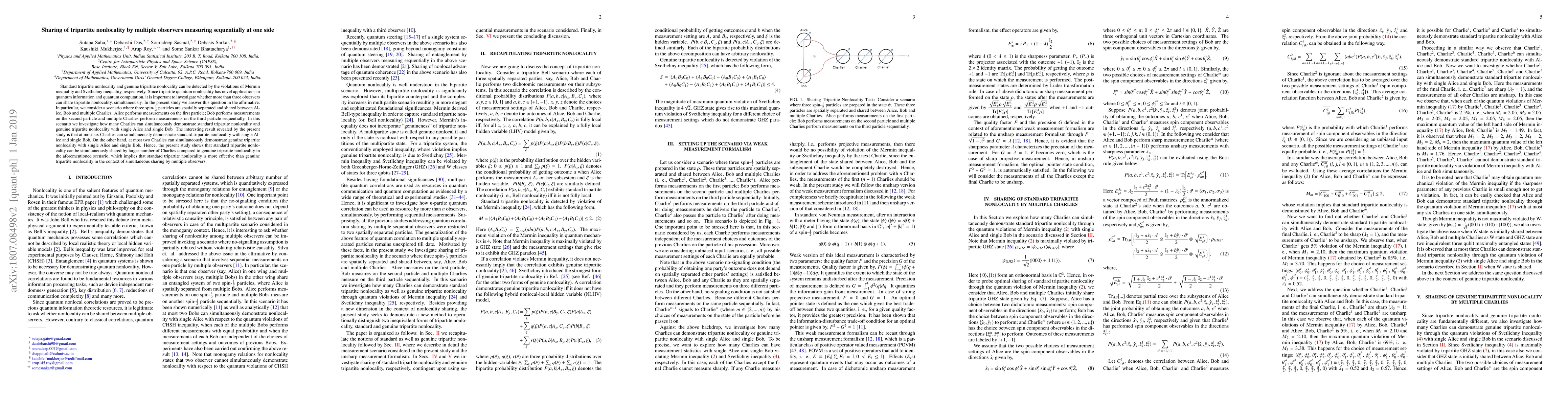 This study investigates how multiple observers can share tripartite nonlocality in a sequential measurement scenario. It finds that up to six Charlies can simultaneously demonstrate standard tripartite nonlocality, while only two Charlies can demonstrate genuine tripartite nonlocality, indicating standard nonlocality is more effectively shared.
