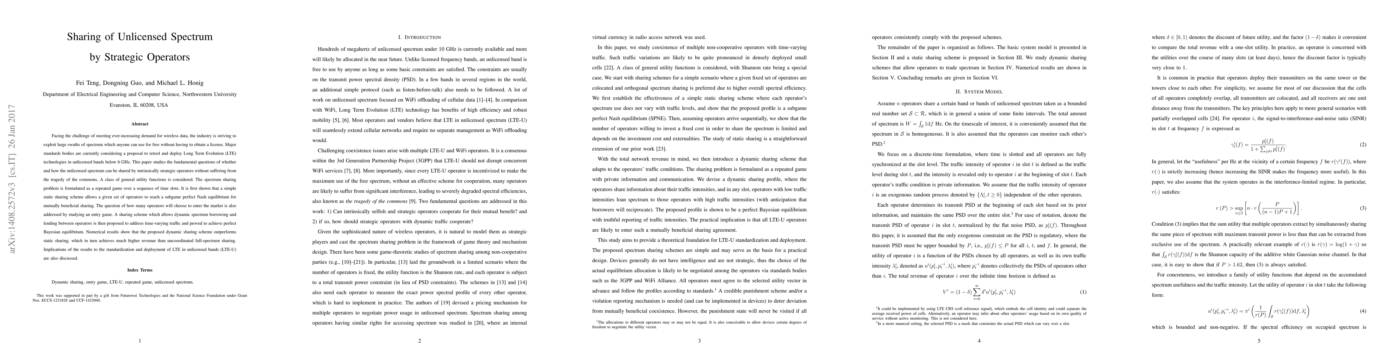 This paper explores strategic sharing of unlicensed spectrum among operators to meet growing wireless data demands, proposing a dynamic spectrum borrowing scheme that outperforms static sharing and uncoordinated full-spectrum sharing, with implications for LTE-U standardization and deployment.