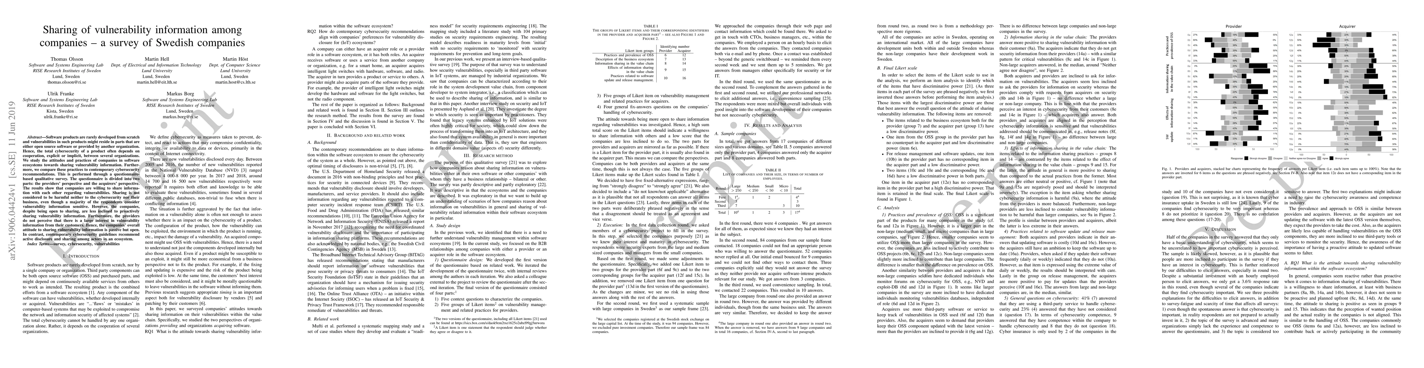 Software products are rarely developed from scratch and vulnerabilities in such products might reside in parts that are either open source software or provided by another organization. Hence, the total cybersecurity of a product often depends on cooperation, explicit or implicit, between several organizations. We study the attitudes and practices of companies in software ecosystems towards sharing vulnerability information. Furthermore, we compare these practices to contemporary cybersecurity recommendations. This is performed through a questionnaire-based qualitative survey. The questionnaire is divided into two parts: the providers' perspective and the acquirers' perspective. The results show that companies are willing to share information with each other regarding vulnerabilities. Sharing is not considered to be harmful neither to the cybersecurity nor their business, even though a majority of the respondents consider vulnerability information sensitive. However, the companies, despite being open to sharing, are less inclined to proactively sharing vulnerability information. Furthermore, the providers do not perceive that there is a large interest in vulnerability information from their customers. Hence, the companies' overall attitude to sharing vulnerability information is passive but open. In contrast, contemporary cybersecurity guidelines recommend active disclosure and sharing among actors in an ecosystem.