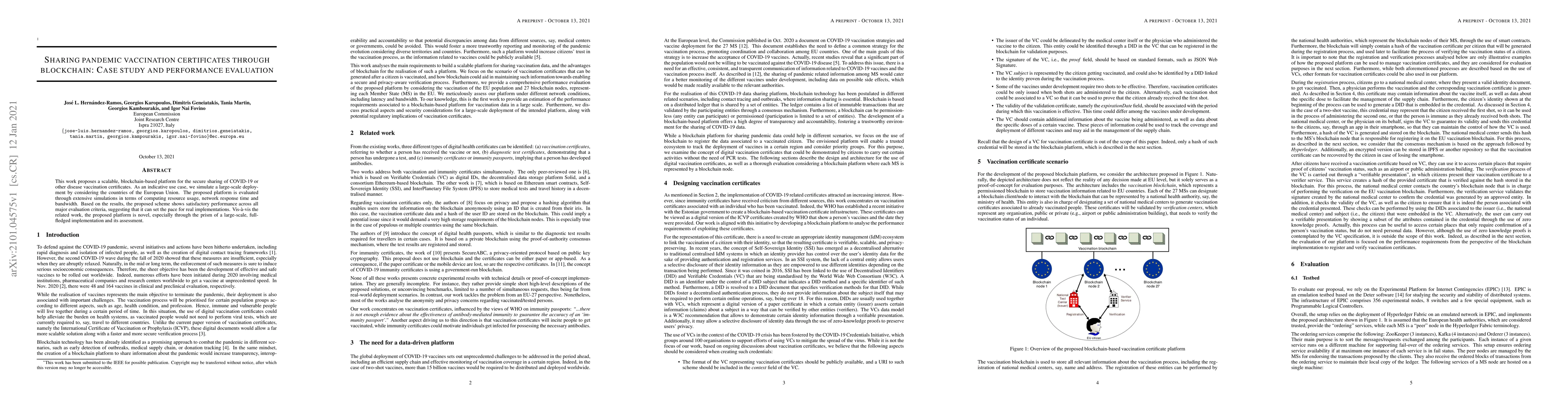 This work proposes a scalable, blockchain-based platform for the secure sharing of COVID-19 or other disease vaccination certificates. As an indicative use case, we simulate a large-scale deployment by considering the countries of the European Union. The proposed platform is evaluated through extensive simulations in terms of computing resource usage, network response time and bandwidth. Based on the results, the proposed scheme shows satisfactory performance across all major evaluation criteria, suggesting that it can set the pace for real implementations. Vis-\`a-vis the related work, the proposed platform is novel, especially through the prism of a large-scale, full-fledged implementation and its assessment.