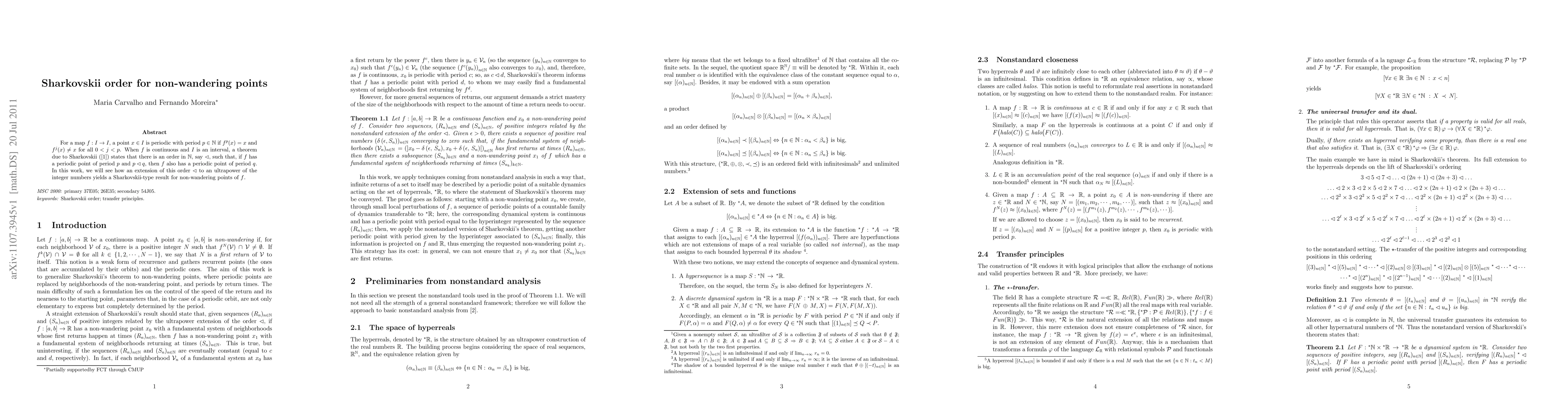 This paper extends Sharkovskii's theorem on periodic points to non-wandering points by using an ultrapower of the integer numbers, establishing a Sharkovskii-type result for these points in continuous maps on intervals.