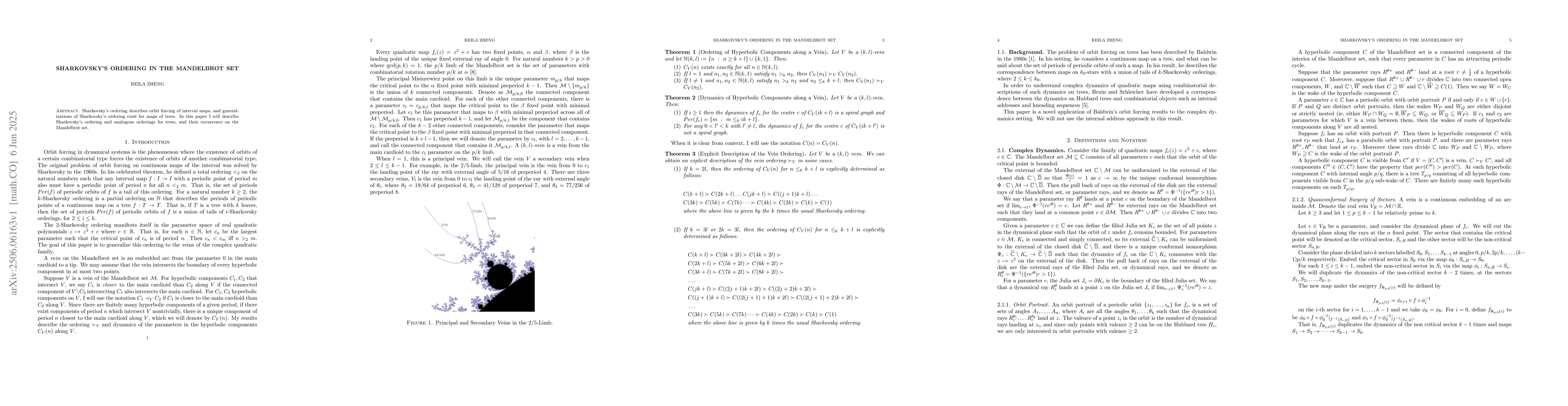 Sharkovsky's ordering describes orbit forcing of interval maps, and generalizations of Sharkovsky's ordering exist for maps of trees. In this paper I will describe Sharkovsky's ordering and analogous orderings for trees, and their occurrence on the Mandelbrot set.