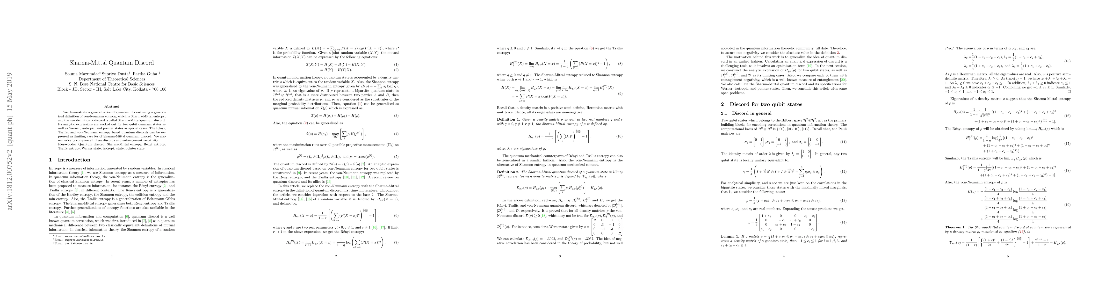 This paper generalizes quantum discord using Sharma-Mittal entropy, defining a new measure called Sharma-Mittal quantum discord. It provides analytical expressions for various quantum states and shows how other quantum discords are limiting cases of this new measure, followed by a numerical comparison with entanglement negativity.