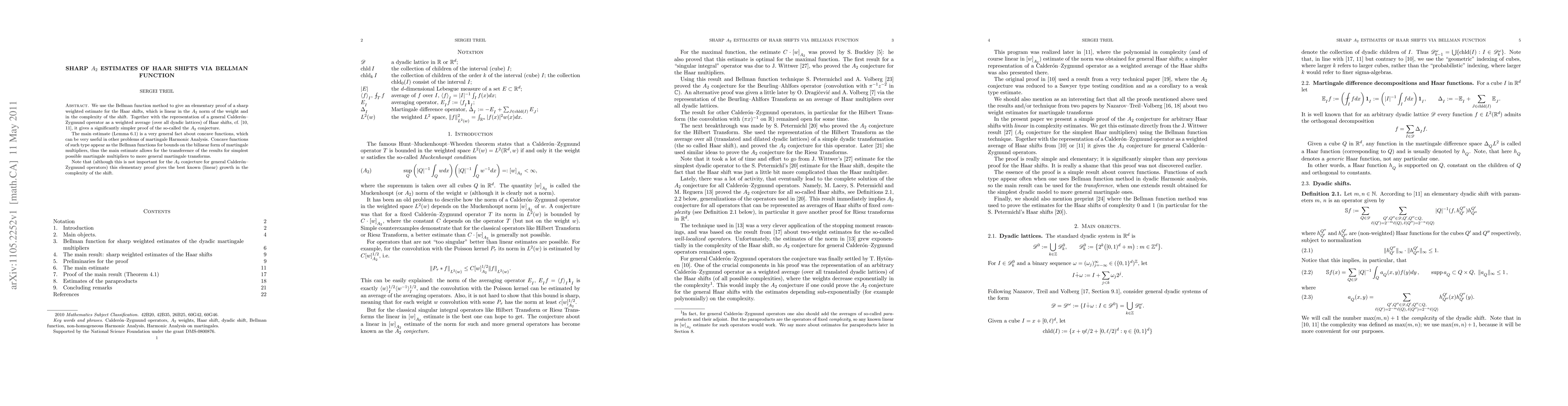 We use the Bellman function method to give an elementary proof of a sharp weighted estimate for the Haar shifts, which is linear in the $A_2$ norm of the weight and in the complexity of the shift. Together with the representation of a general Calder\'{o}n--Zygmund operator as a weighted average (over all dyadic lattices) of Haar shifts, (cf. arXiv:1010.0755v2[math.CA], arXiv:1007.4330v1[math.CA]) it gives a significantly simpler proof of the so-called the $A_2$ conjecture. The main estimate is a very general fact about concave functions, which can be very useful in other problems of martingale Harmonic Analysis. Concave functions of such type appear as the Bellman functions for bounds on the bilinear form of martingale multipliers, thus the main estimate allows for the transference of the results for simplest possible martingale multipliers to more general martingale transforms. Note that (although this is not important for the $A_2$ conjecture for general Calder\'{o}n--Zygmund operators) this elementary proof gives the best known (linear) growth in the complexity of the shift.