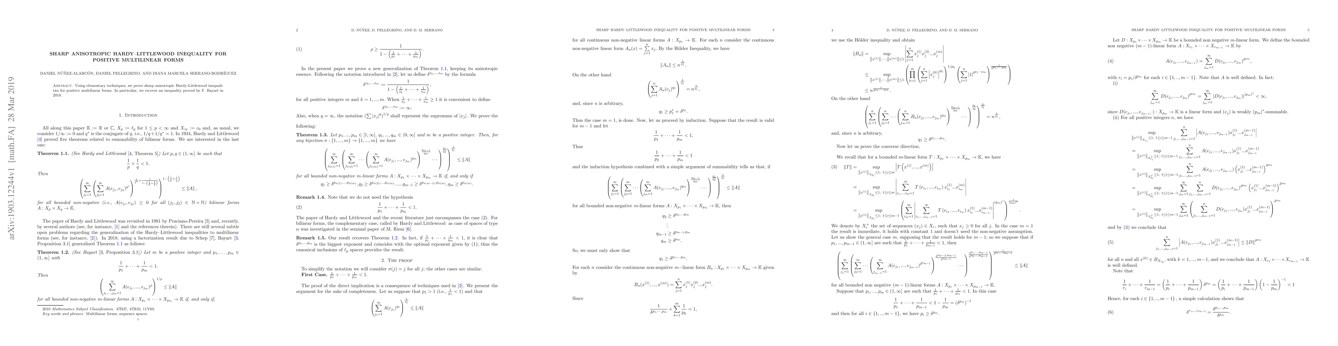The paper establishes sharp anisotropic Hardy-Littlewood inequalities for positive multilinear forms using elementary techniques, recovering a previously proven inequality by F. Bayart.