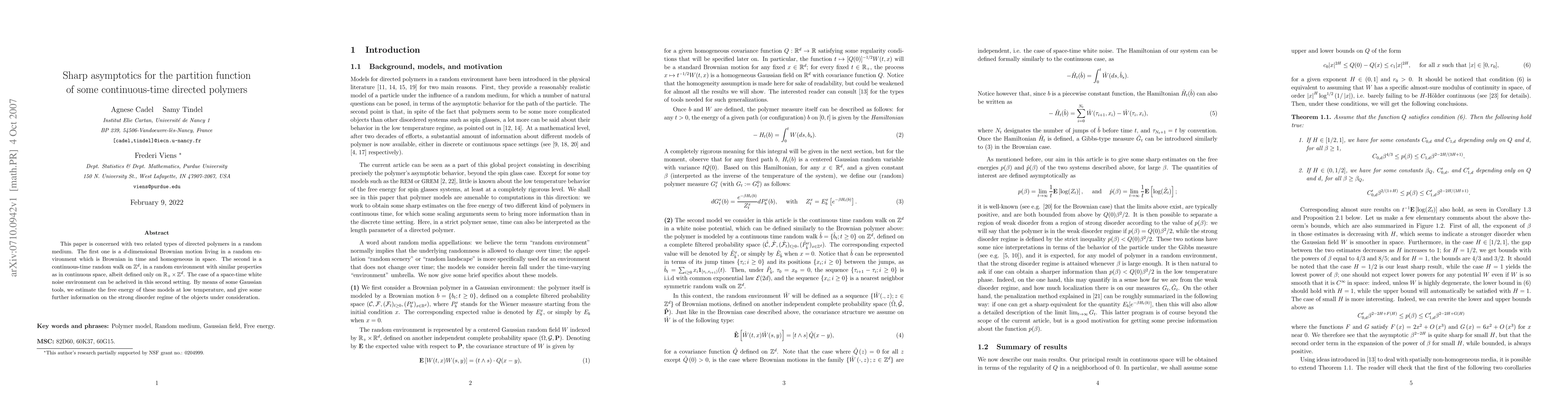 Researchers analyzed two types of directed polymers in a random medium and estimated their free energy at low temperature using Gaussian tools, providing insight into the strong disorder regime.