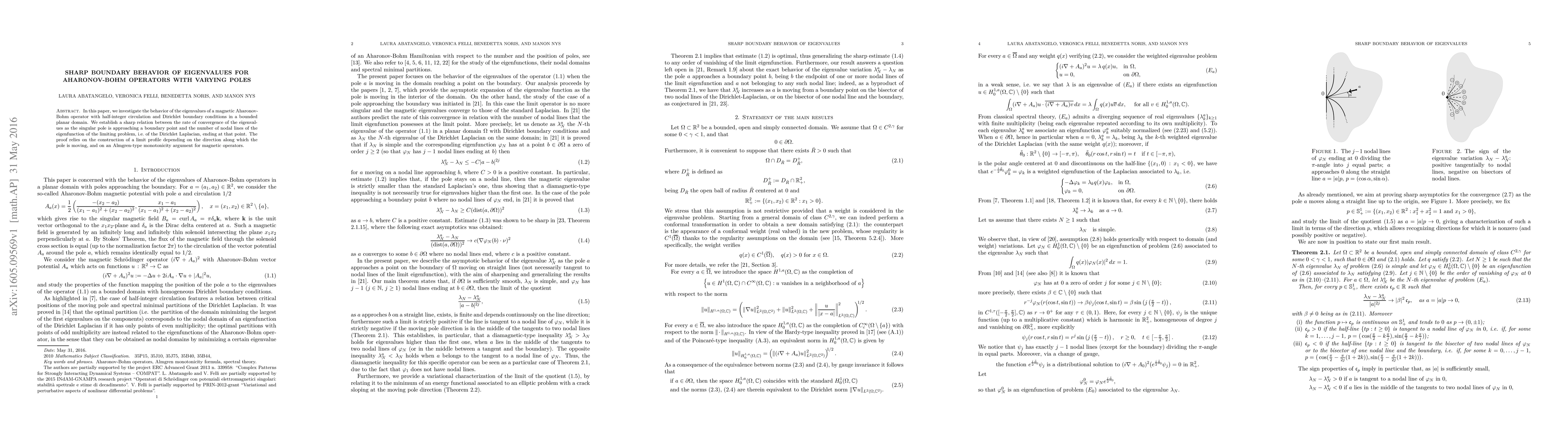 This paper examines the eigenvalues of Aharonov-Bohm operators with varying poles, establishing a sharp relationship between the convergence rate of these eigenvalues as poles approach boundary points and the number of nodal lines of the limiting Dirichlet Laplacian eigenfunctions ending at those points. The proof utilizes a limit profile construction and an Almgren-type monotonicity argument for magnetic operators.