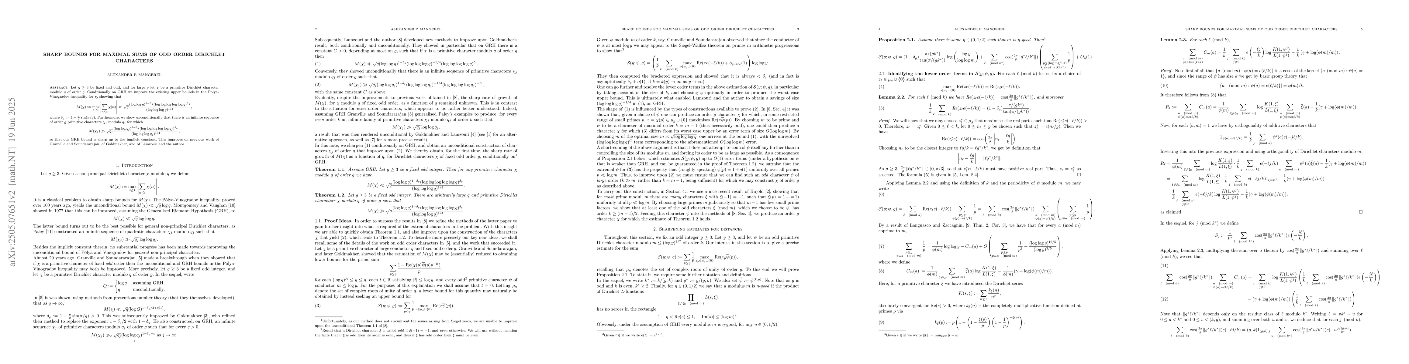 Research improves bounds on sums of Dirichlet characters for large orders, showing a sharper upper bound under certain conditions and an unconditional lower bound that equals the previous upper bound.