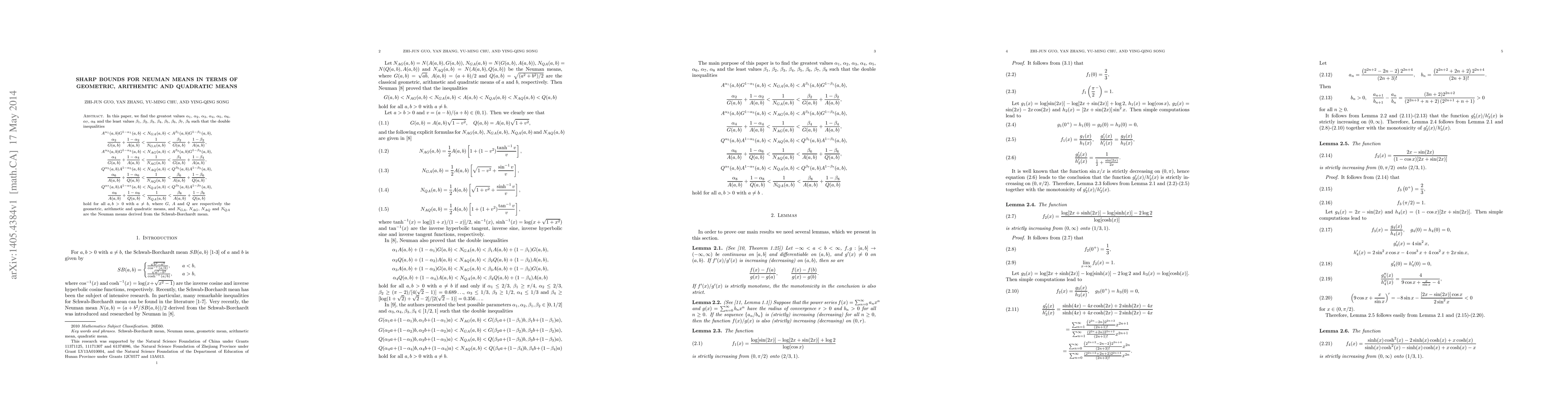 This paper establishes sharp bounds for Neuman means in terms of geometric, arithmetic, and quadratic means, providing new insights into the relationships between these mathematical concepts.