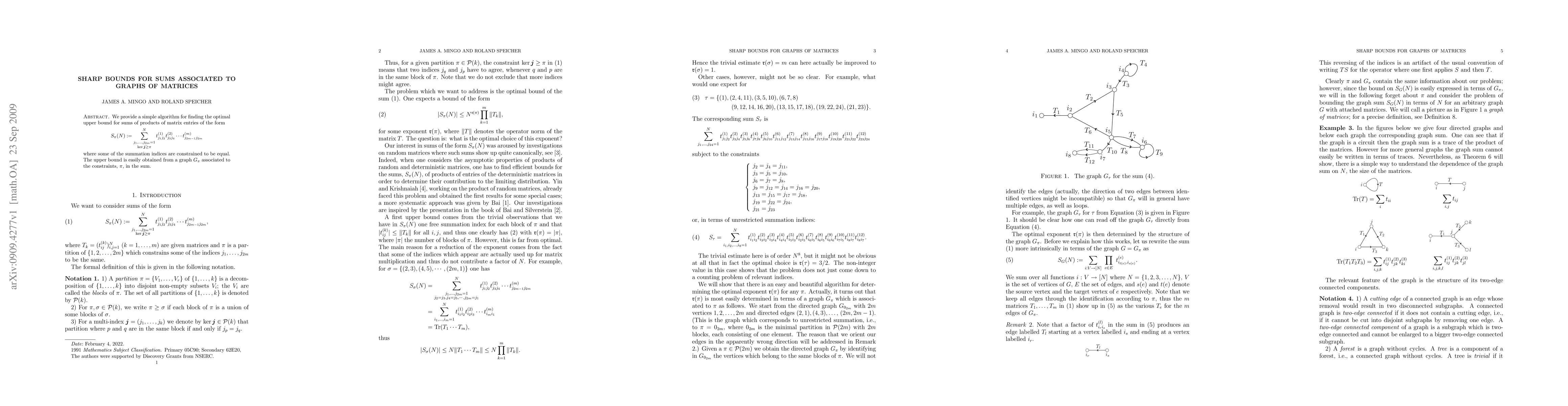 We provide a simple algorithm for finding the optimal upper bound for sums of products of matrix entries of the form S_pi(N) := sum_{j_1, ..., j_2m = 1}^N t^1_{j_1 j_2} t^2_{j_3 j_4} ... t^m_{j_2m-1 j_2m} where some of the summation indices are constrained to be equal. The upper bound is easily obtained from a graph G associated to the constraints in the sum.