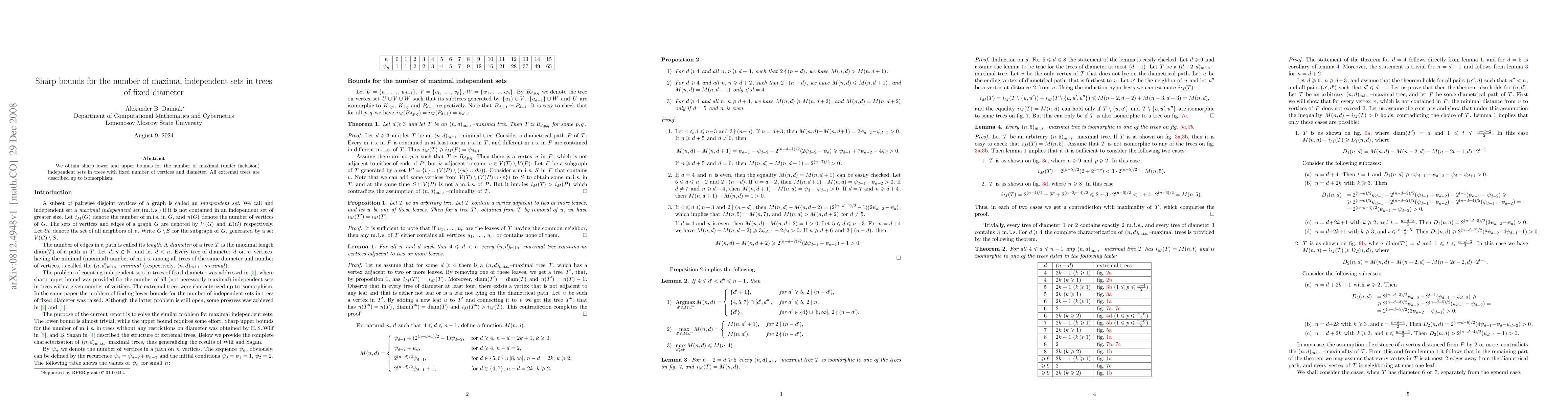 Summary: This research provides precise lower and upper bounds for the count of maximal independent sets in trees with a fixed number of vertices and diameter, along with the identification of extremal tree structures up to isomorphism.