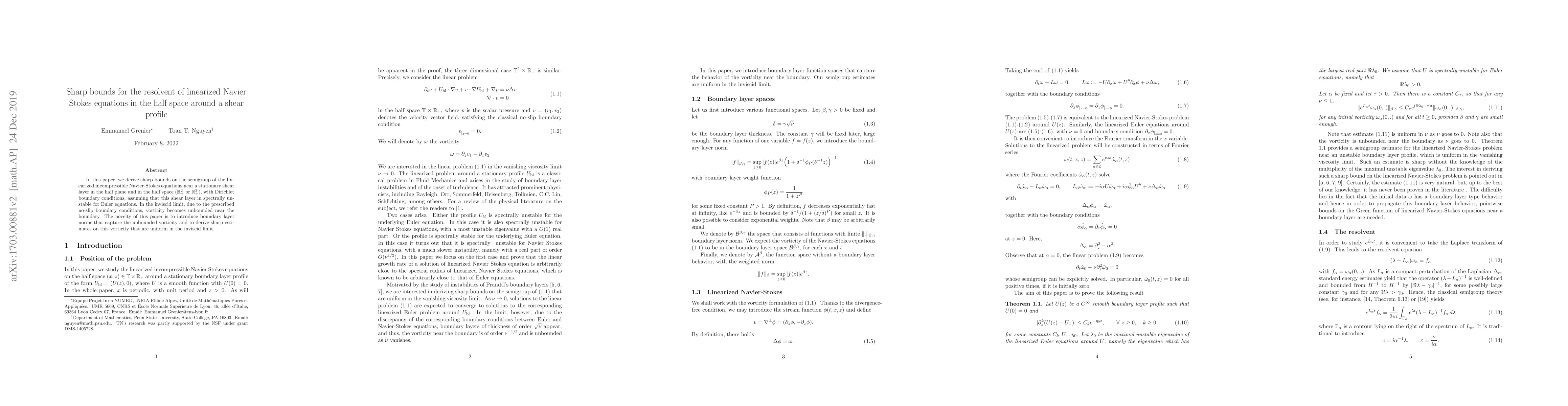 Researchers derived sharp bounds on the behavior of linearized Navier-Stokes equations near a stationary shear layer in half spaces, accounting for unbounded vorticity near boundaries in the inviscid limit.