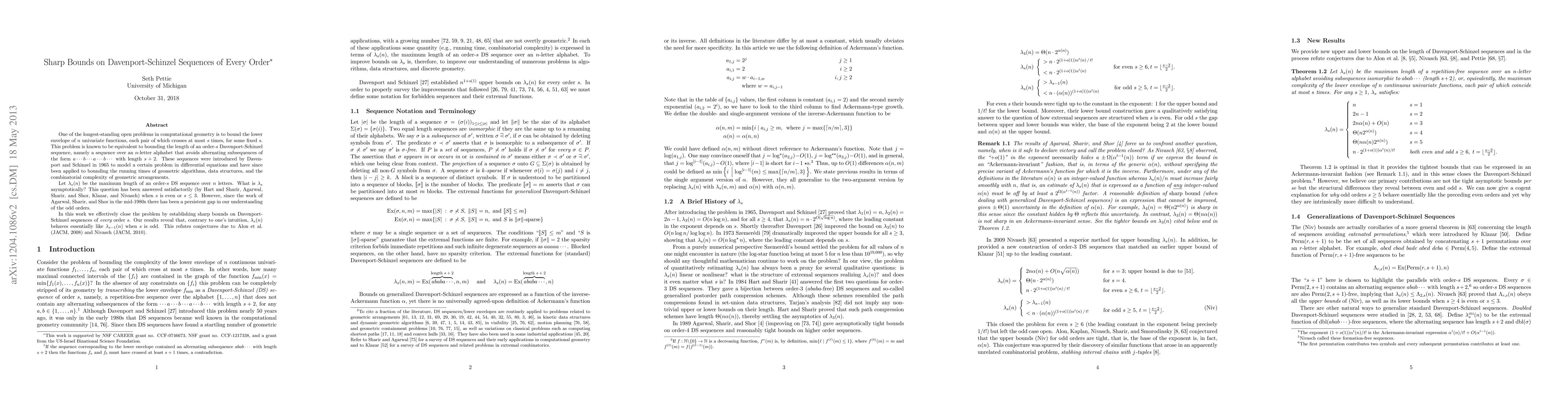 One of the longest-standing open problems in computational geometry is to bound the lower envelope of $n$ univariate functions, each pair of which crosses at most $s$ times, for some fixed $s$. This problem is known to be equivalent to bounding the length of an order-$s$ Davenport-Schinzel sequence, namely a sequence over an $n$-letter alphabet that avoids alternating subsequences of the form $a \cdots b \cdots a \cdots b \cdots$ with length $s+2$. These sequences were introduced by Davenport and Schinzel in 1965 to model a certain problem in differential equations and have since been applied to bounding the running times of geometric algorithms, data structures, and the combinatorial complexity of geometric arrangements. Let $\lambda_s(n)$ be the maximum length of an order-$s$ DS sequence over $n$ letters. What is $\lambda_s$ asymptotically? This question has been answered satisfactorily (by Hart and Sharir, Agarwal, Sharir, and Shor, Klazar, and Nivasch) when $s$ is even or $s\le 3$. However, since the work of Agarwal, Sharir, and Shor in the mid-1980s there has been a persistent gap in our understanding of the odd orders. In this work we effectively close the problem by establishing sharp bounds on Davenport-Schinzel sequences of every order $s$. Our results reveal that, contrary to one's intuition, $\lambda_s(n)$ behaves essentially like $\lambda_{s-1}(n)$ when $s$ is odd. This refutes conjectures due to Alon et al. (2008) and Nivasch (2010).