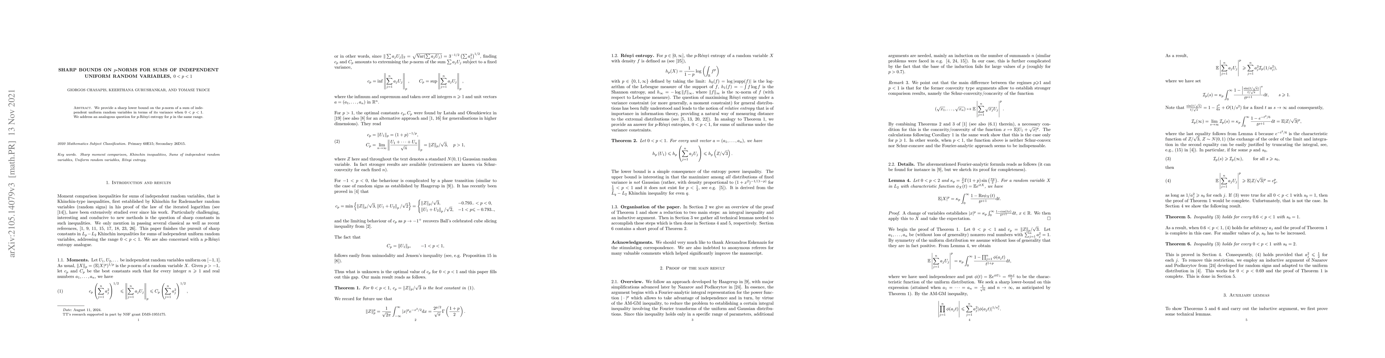 We provide a sharp lower bound on the $p$-norm of a sum of independent uniform random variables in terms of its variance when $0 < p < 1$. We address an analogous question for $p$-R\'enyi entropy for $p$ in the same range.