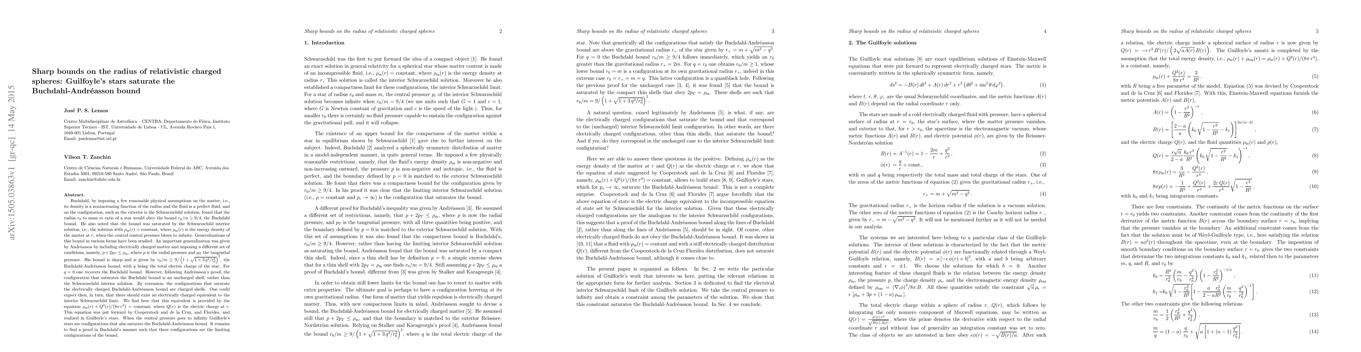This paper establishes sharp bounds on the radius of relativistic charged spheres, demonstrating that Guilfoyle's stars saturate the Buchdahl-Andr\'easson bound. It shows that when central pressure approaches infinity, Guilfoyle's stars represent the limiting configurations for charged relativistic stars.