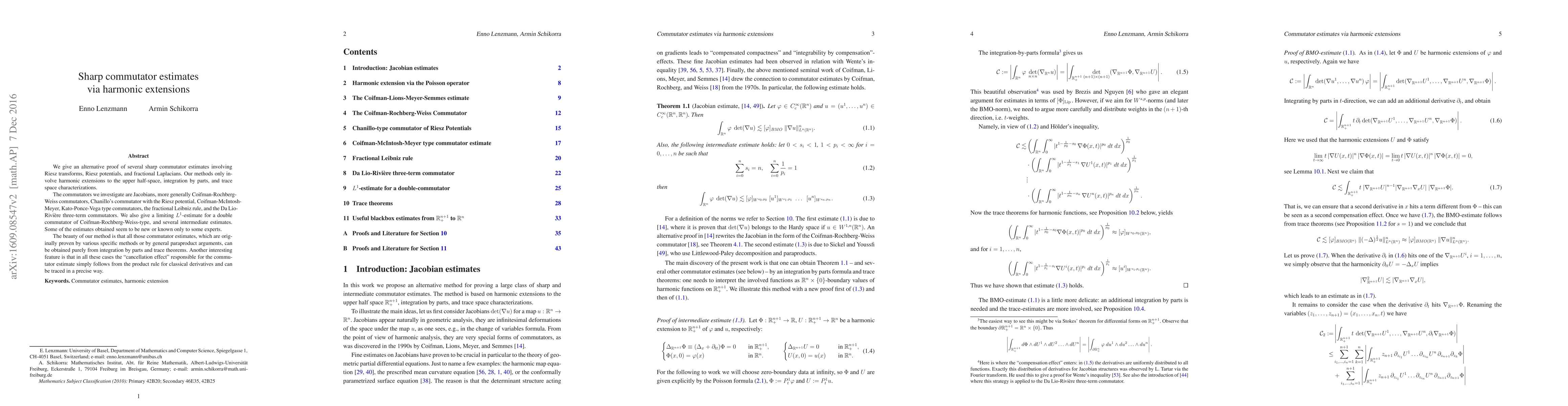 This paper provides an alternative proof of several sharp commutator estimates using harmonic extensions, integration by parts, and trace space characterizations. The method simplifies the derivation of estimates for various commutators, revealing that the cancellation effect arises naturally from classical derivative rules.