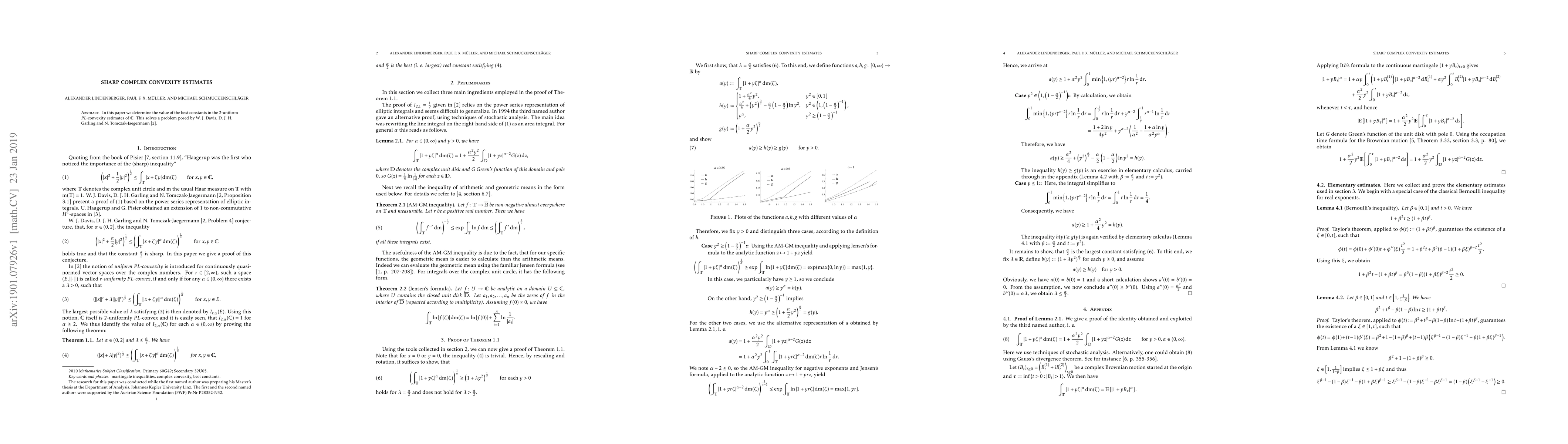 In this paper we determine the value of the best constants in the 2-uniform PL-convexity estimates of $\mathbb C$. This solves a problem posed by W. J. Davis, D. J. H. Garling and N. Tomczak-Jaegermann.