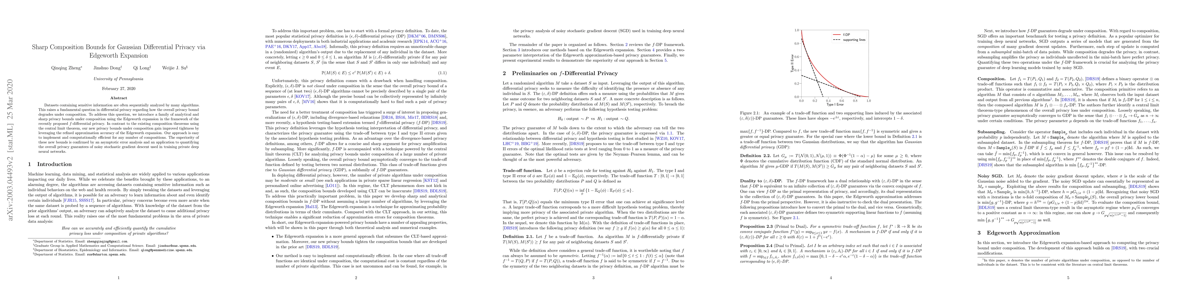 Researchers introduce a new framework for composing differential privacy bounds using Edgeworth expansion, providing tighter privacy guarantees under sequential analysis of sensitive data.