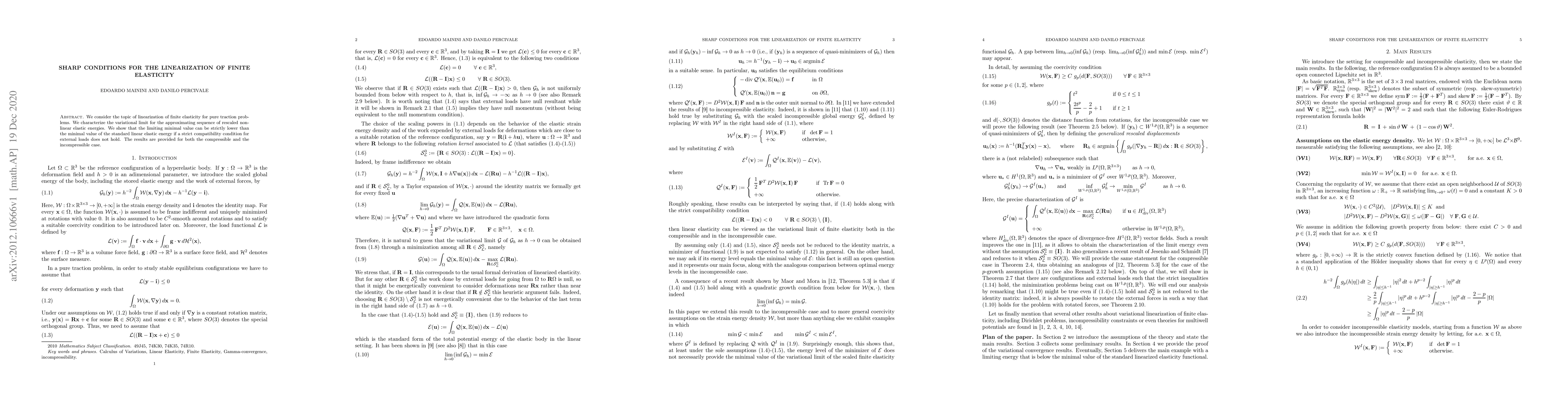 We consider the topic of linearization of finite elasticity for pure traction problems. We characterize the variational limit for the approximating sequence of rescaled nonlinear elastic energies. We show that the limiting minimal value can be strictly lower than the minimal value of the standard linear elastic energy if a strict compatibility condition for external loads does not hold. The results are provided for both the compressible and the incompressible case.