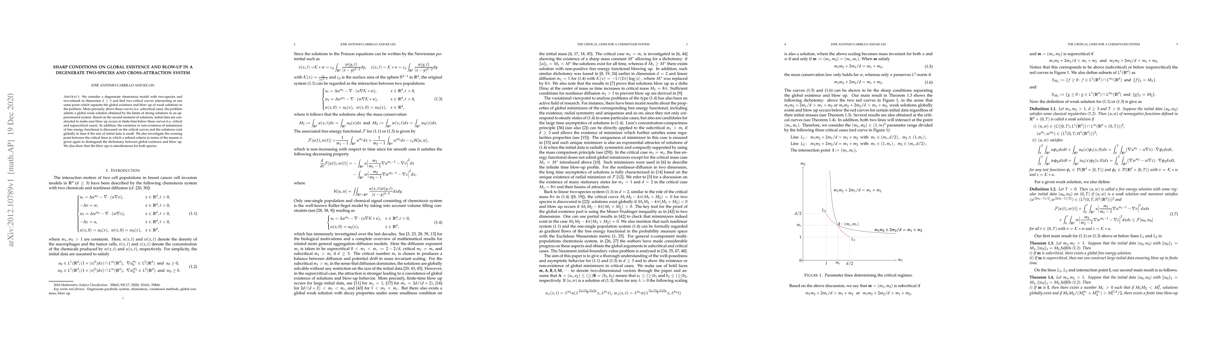 This paper investigates a degenerate chemotaxis model for two species and two stimuli, identifying critical curves that determine whether weak solutions globally exist or blow up. It finds that solutions exist globally when parameters are subcritical, and blow up when they are critical or supercritical, with simultaneous blow-up for both species.