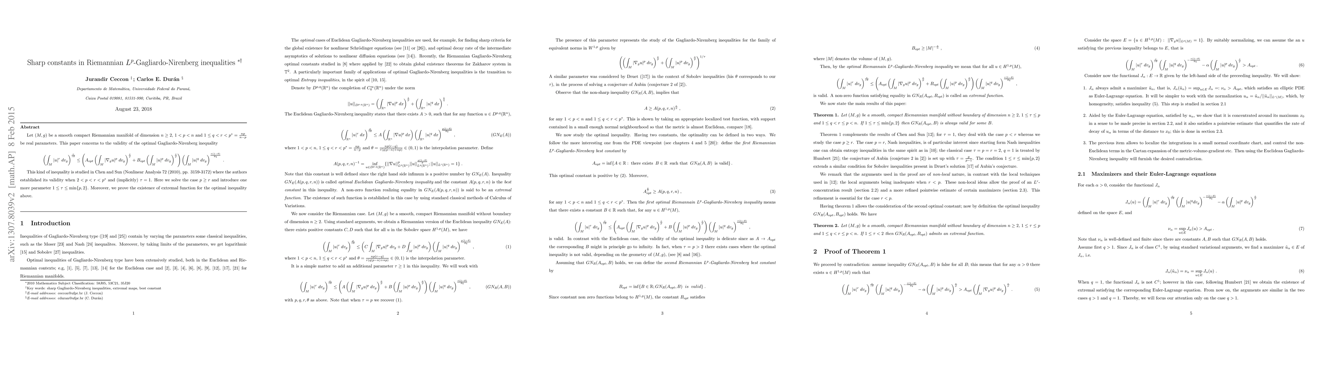 This paper investigates the optimality of the Gagliardo-Nirenberg inequality on smooth compact Riemannian manifolds, addressing cases where the exponent \( p \geq r \). It introduces a new parameter \(\tau\) and proves the existence of extremal functions for the optimal inequality.