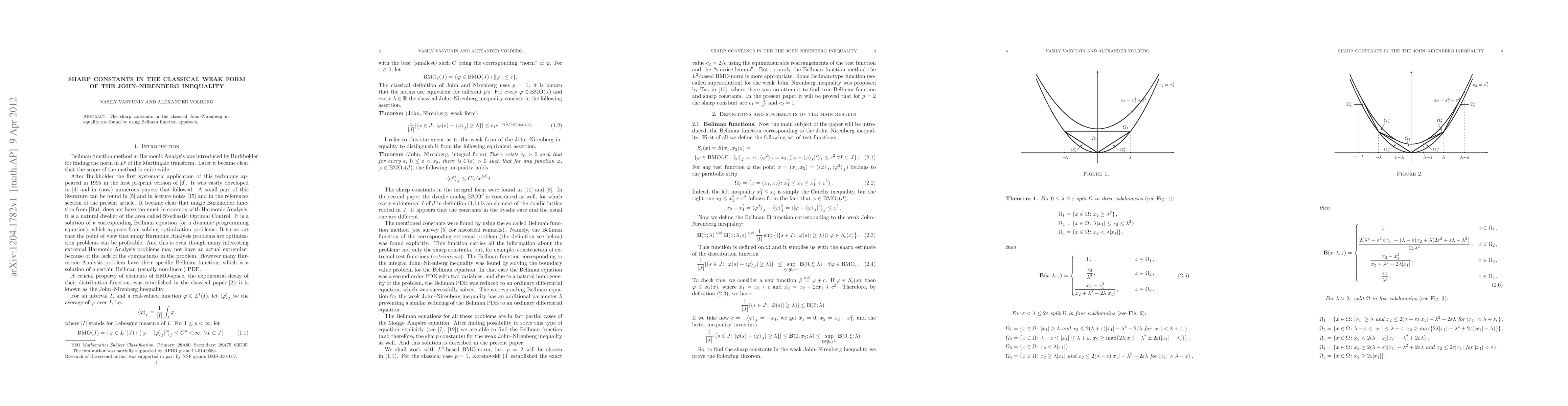 Summary: This paper determines the sharp constants in the classical John-Nirenberg inequality through the application of the Bellman function approach, providing a precise mathematical solution.