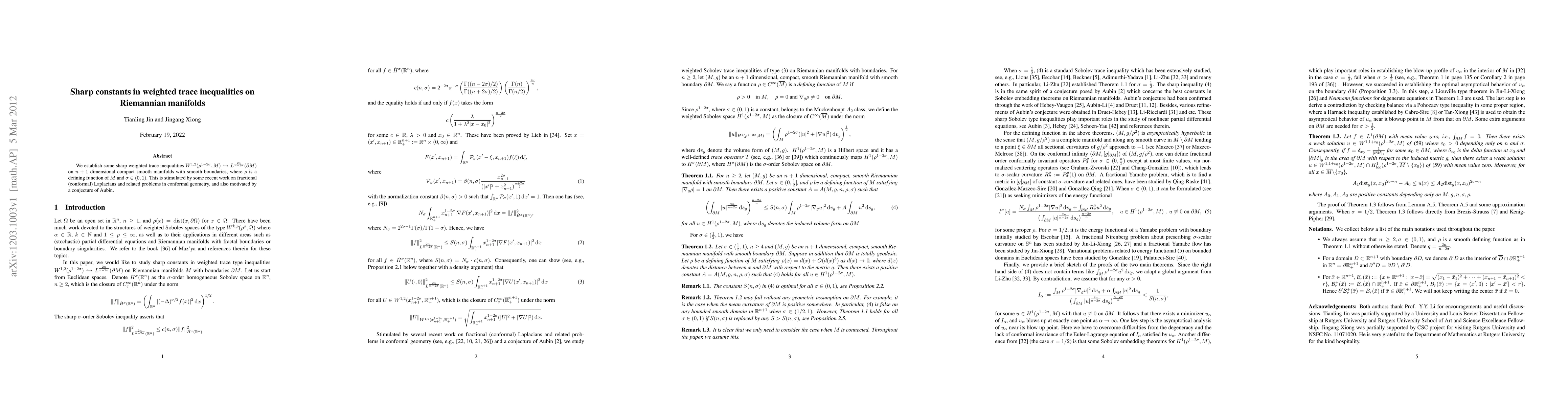 Researchers established sharp weighted trace inequalities on compact Riemannian manifolds with smooth boundaries, relating to fractional Laplacians and conformal geometry.