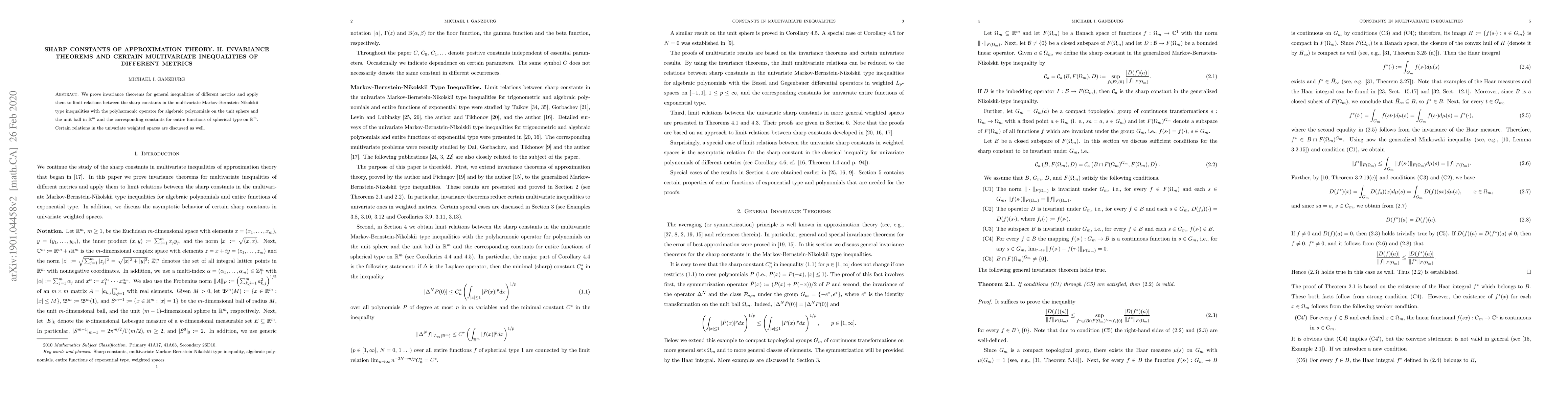 This paper proves invariance theorems for inequalities involving different metrics and applies these theorems to establish limit relations between sharp constants in multivariate Markov-Bernstein-Nikolskii type inequalities for algebraic polynomials and entire functions of spherical type. It also discusses certain relations in univariate weighted spaces.