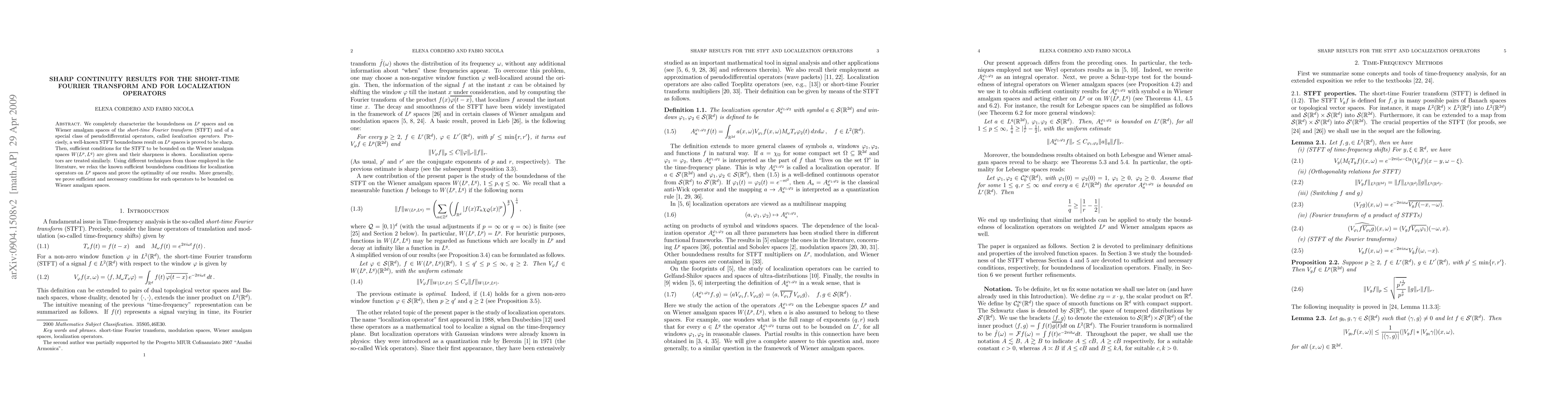 This paper characterizes the sharp boundedness of the short-time Fourier transform (STFT) and localization operators on $L^p$ and Wiener amalgam spaces, proving the optimality of previously known results and providing new sufficient and necessary conditions for boundedness on Wiener amalgam spaces.