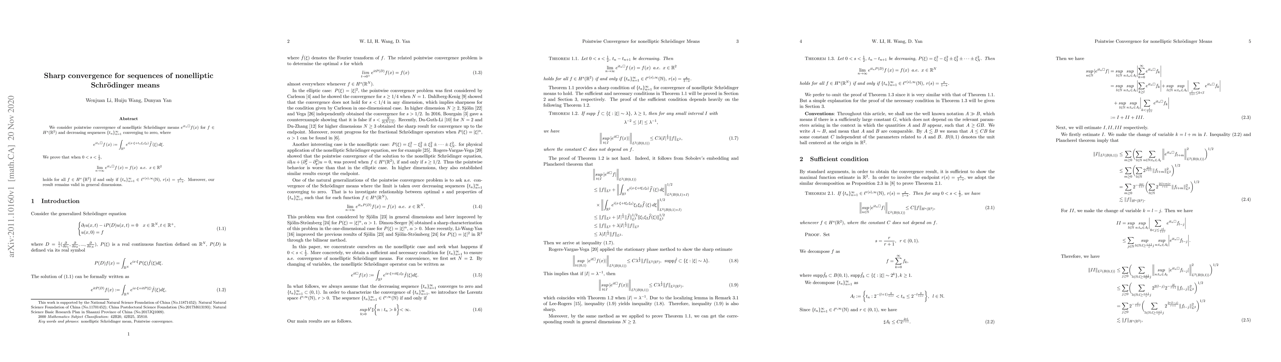 This paper investigates the pointwise convergence of nonelliptic Schrödinger means for functions in Sobolev spaces $H^s(\mathbb{R}^2)$. It proves that sharp convergence to the original function occurs almost everywhere if and only if the sequence of time parameters $\{t_n\}$ belongs to a specific $\ell^{r(s),\infty}$ space, with $r(s)$ defined as $\frac{s}{1-s}$ for $0 < s < \frac{1}{2}$. The result is shown to hold in any dimension.