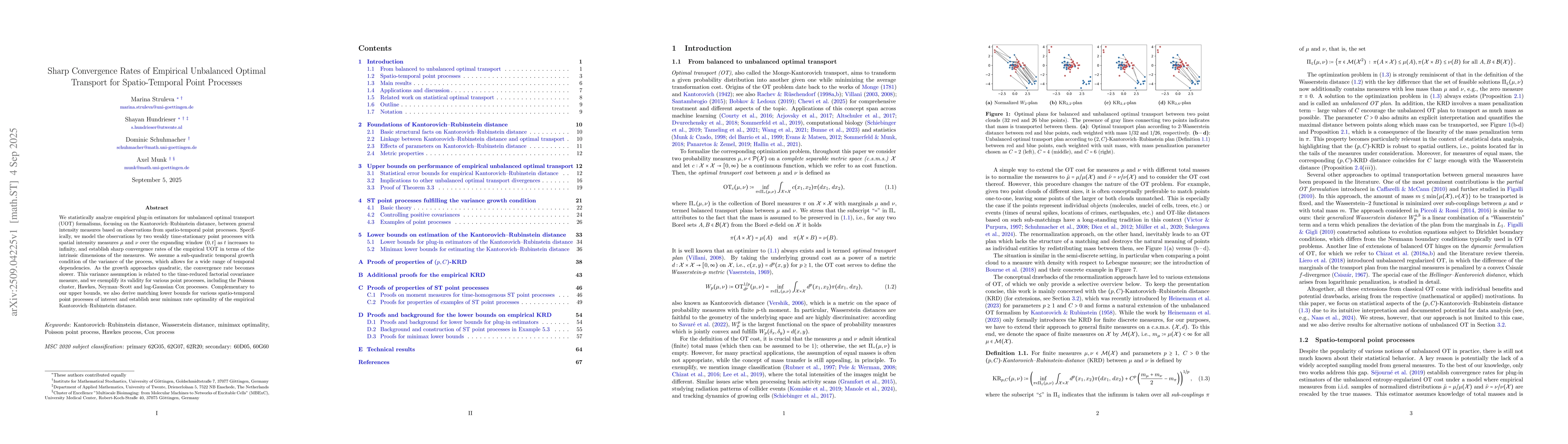 We statistically analyze empirical plug-in estimators for unbalanced optimal transport (UOT) formalisms, focusing on the Kantorovich-Rubinstein distance, between general intensity measures based on observations from spatio-temporal point processes. Specifically, we model the observations by two weakly time-stationary point processes with spatial intensity measures $\mu$ and $\nu$ over the expanding window $(0,t]$ as $t$ increases to infinity, and establish sharp convergence rates of the empirical UOT in terms of the intrinsic dimensions of the measures. We assume a sub-quadratic temporal growth condition of the variance of the process, which allows for a wide range of temporal dependencies. As the growth approaches quadratic, the convergence rate becomes slower. This variance assumption is related to the time-reduced factorial covariance measure, and we exemplify its validity for various point processes, including the Poisson cluster, Hawkes, Neyman-Scott, and log-Gaussian Cox processes. Complementary to our upper bounds, we also derive matching lower bounds for various spatio-temporal point processes of interest and establish near minimax rate optimality of the empirical Kantorovich-Rubinstein distance.