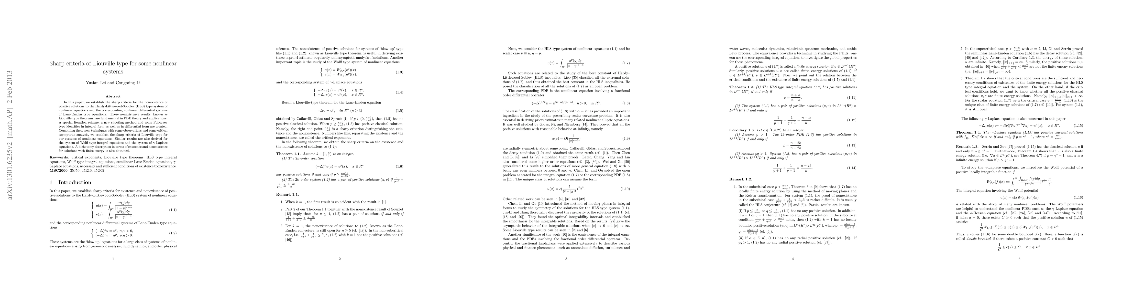 This paper establishes sharp criteria for the nonexistence of positive solutions to nonlinear systems, including Hardy-Littlewood-Sobolev and Lane-Emden type equations, using new techniques like an iteration scheme and shooting method. The results provide a dichotomy for solutions with finite energy and extend to Wolff type integral and $\gamma$-Laplace equations.