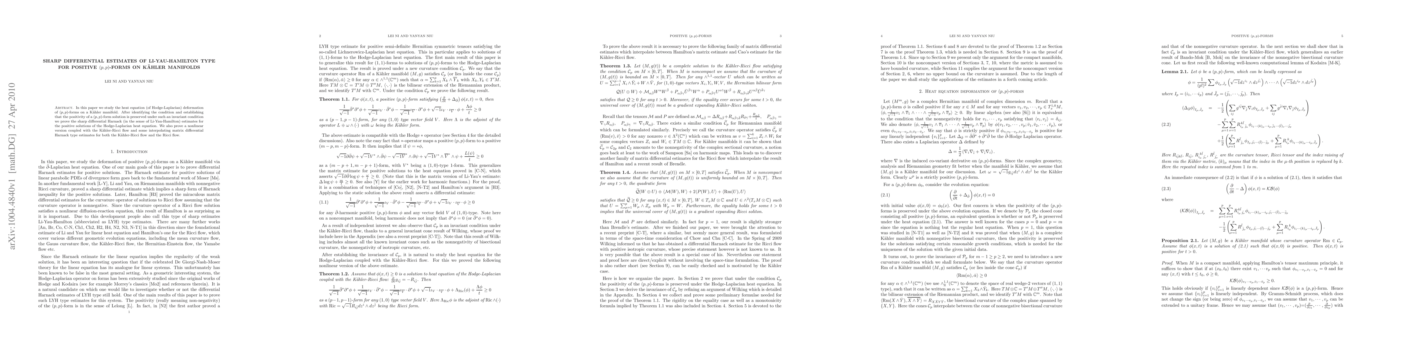 This paper investigates the heat equation deformation of $(p, p)$-forms on Kähler manifolds, proving sharp differential Harnack estimates for positive solutions of the Hodge-Laplacian heat equation. It also establishes a nonlinear version coupled with the Kähler-Ricci flow and provides matrix differential Harnack type estimates for both the Kähler-Ricci flow and the Ricci flow.