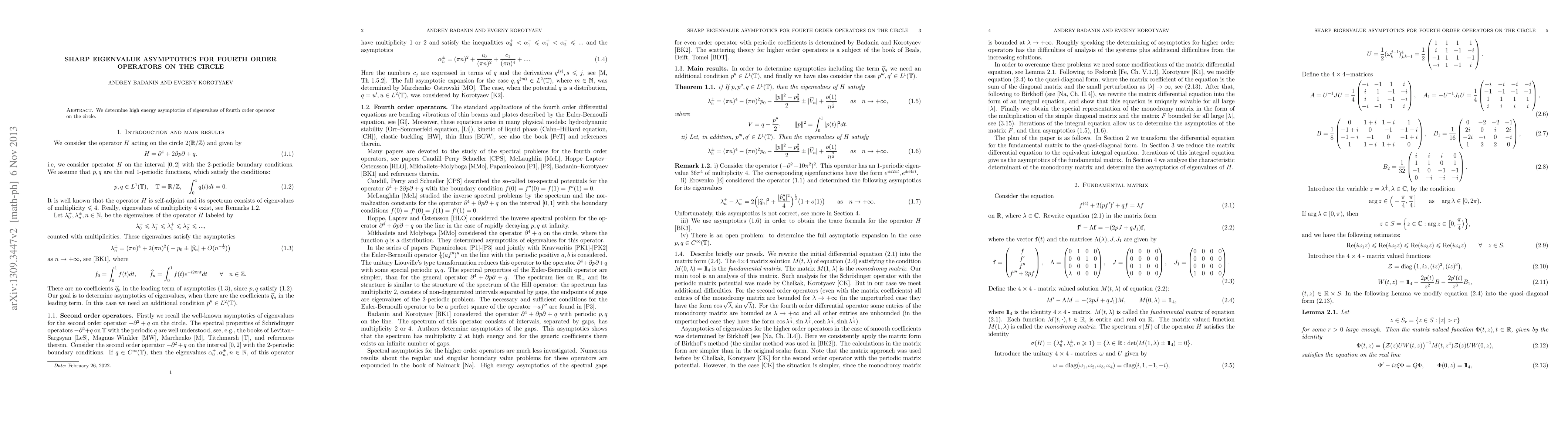 We determine high energy asymptotics of eigenvalues of fourth order operator on the circle.
