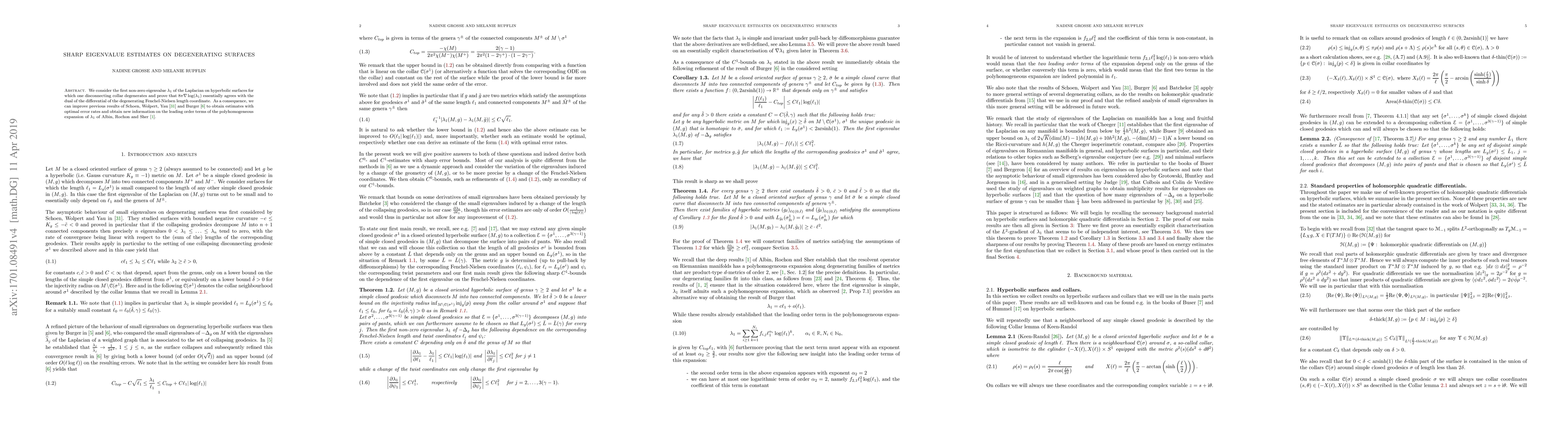 The research employs a combination of geometric analysis and spectral theory on hyperbolic surfaces, utilizing the Fenchel-Nielsen coordinates and degenerating collar analysis.